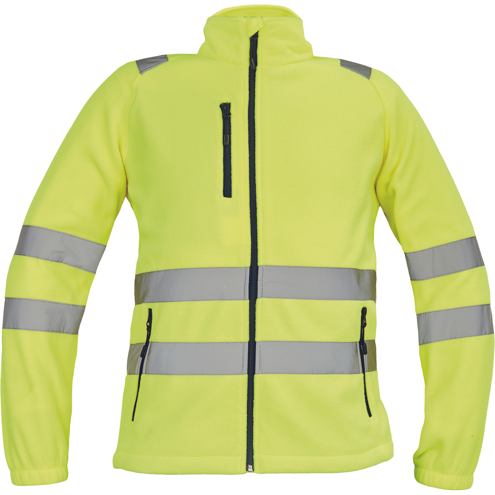 • pánská full HI-VIS fleecová mikina s reflexními pruhy přes ramena, v bocích a na rukávech • zapínání na zip • 1 náprsní kapsa a 2 postranní kapsy na zip • elastické lemy rukávů a boků