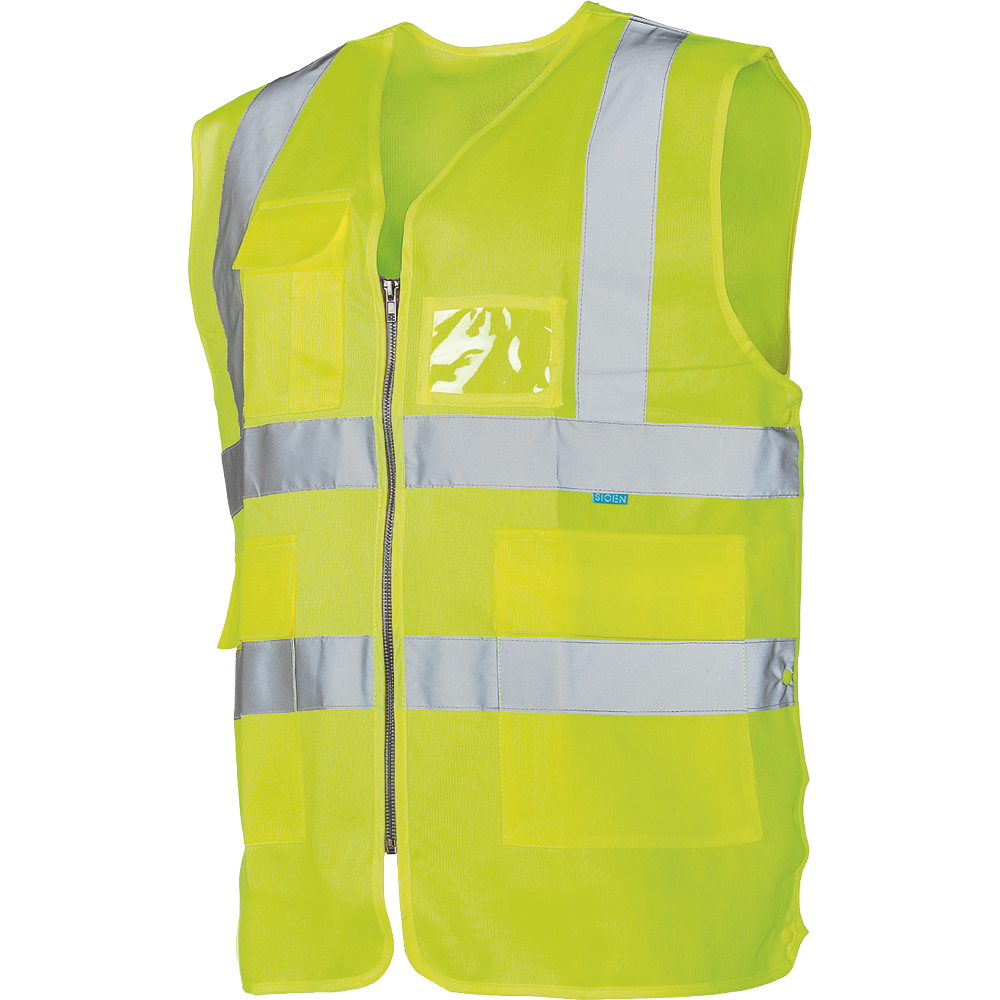 • HI-VIS vest se zapínáním na zip • 1 náprsní kapsa s klopou, 2 boční kapsy s klopami • 1 náprsní kapsa na ID kartu • boční nastavení obvodu v pase pomocí druků