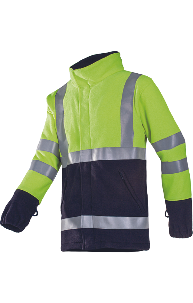 • pánská Hi-Vis fleecová bunda se stojáčkem • zapínání na zip kryté légou s druky • ochrana pře tepelnými účinky elektrického oblouku a statické elektřině • 2 boční kapsy a 2 vnitřní kapsy • elastické zakončení manžet rukávů a spodního okraje