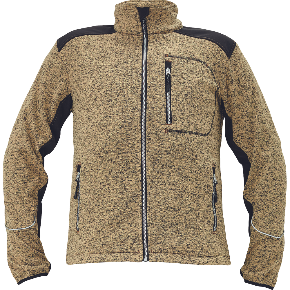 • pánská bunda z melírovaného úpletu se zapínáním na zip • zesílená část v oblasti ramen a rukávů softshellovým materiálem • 2 přední kapsy na zip • 1 náprsní kapsa na zip • nastavitelná šíře spodního lemu • očko na palec na konci rukávu