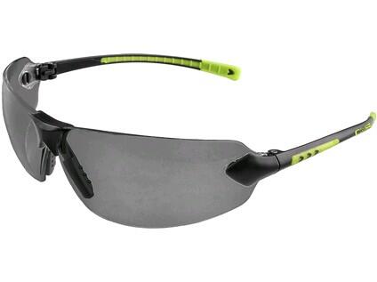 Polykarbonátové brýle se štíhlými pružnými postranicemi nezpůsobující tlak a možností nastavení úhlu zorníku. Vhodné pro použití s přilbou nebo maskou, při práci ve stavebnictví a skladech.