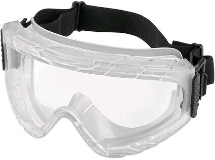 Robustní uzavřené acetátové brýle. Nepřímá ventilace. Poskytují ochranu UV360. Nastavitelná gumička. Ochrana proti postříkání chemikáliemi jako benzín a mazací oleje. Vhodné jako krycí brýle přes dioptrické brýle. Vhodné pro stavebnictví, strojírenství, zemědělství, laboratoře, automobilový průmysl.
