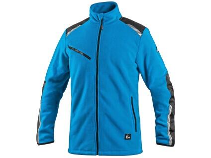 Pánská mikina na zip, pas a rukávy ukončeny pružnou manžetou, zesílené panely na loktech, náprsní kapsa na zip, boční kapsy na zip, reflexní doplňky.