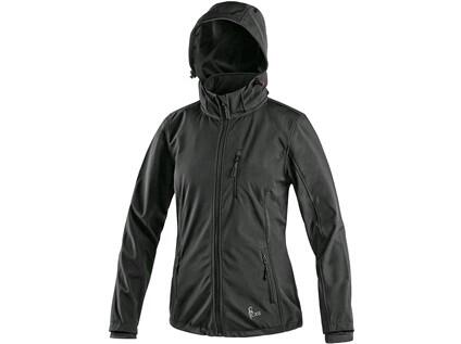 Dámská softshellová bunda s odepínací kapucí, odolná proti vodě a větru, zapínaní na zip, větrání v podpaží, rukávy s vnitřními manžetami, stahování v dolním okraji, spodní kapsy na zip, reflexní doplňky, TPU membrána. Odolnost materiálu proti průniku vody 10 000 mm mimo oblast švů, paropropustnost 3 000 g/m2/24h.