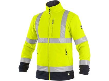 Dvoubarevná výstražná vesta se zapínáním na zip, 2 spodní kapsy kryté patkou, vpravo nahoře kapsa na mobil a tužku, kroužek na přichycení ID karty, vlevo nahoře průhledná kapsička na ID kartu,…