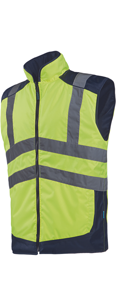 • moderní, teplá, pohodlná a větruodolná HI-VIS oboustranná vesta • rovný límec • zapínání na zip • 2 vložené kapsy • pevná prošívaná podšívka • 2 vnitřní kapsy