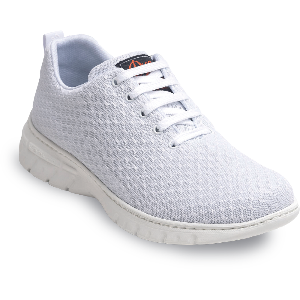 • speciální typ obuvi s bezešvým svrškem a se tkaničkami • unikátní materiál D'COVER DRY® je prodyšný a zároveň odpuzující tekutiny • konstrukce obuvi, vycpaná textilní podšívka D'DRY® a polstrovaný límec kotníku jsou tak navržené, aby se zabránilo tvorbě puchýřů • obuv má rovný tvar s kulatou špičkou a pevnou podporu paty • vnitřní polstrovaná látková stélka je vyrobena z tepelně tvarované polyuretanové pěny s antibakteriální úpravou a aktivním uhlím • podešev na bázi materiálu EVA XL EXTRALIGHT® je ultra lehká, pohodlná, flexibilní a protiskluzová, s plochým designem podložky, lemovanými hranami a širokými drážkami pro usnadnění odvodu tekutin • obuv je vhodná pro praní v pračce do 40o • perfektní model pro zaměstnance segmentu HoReCa