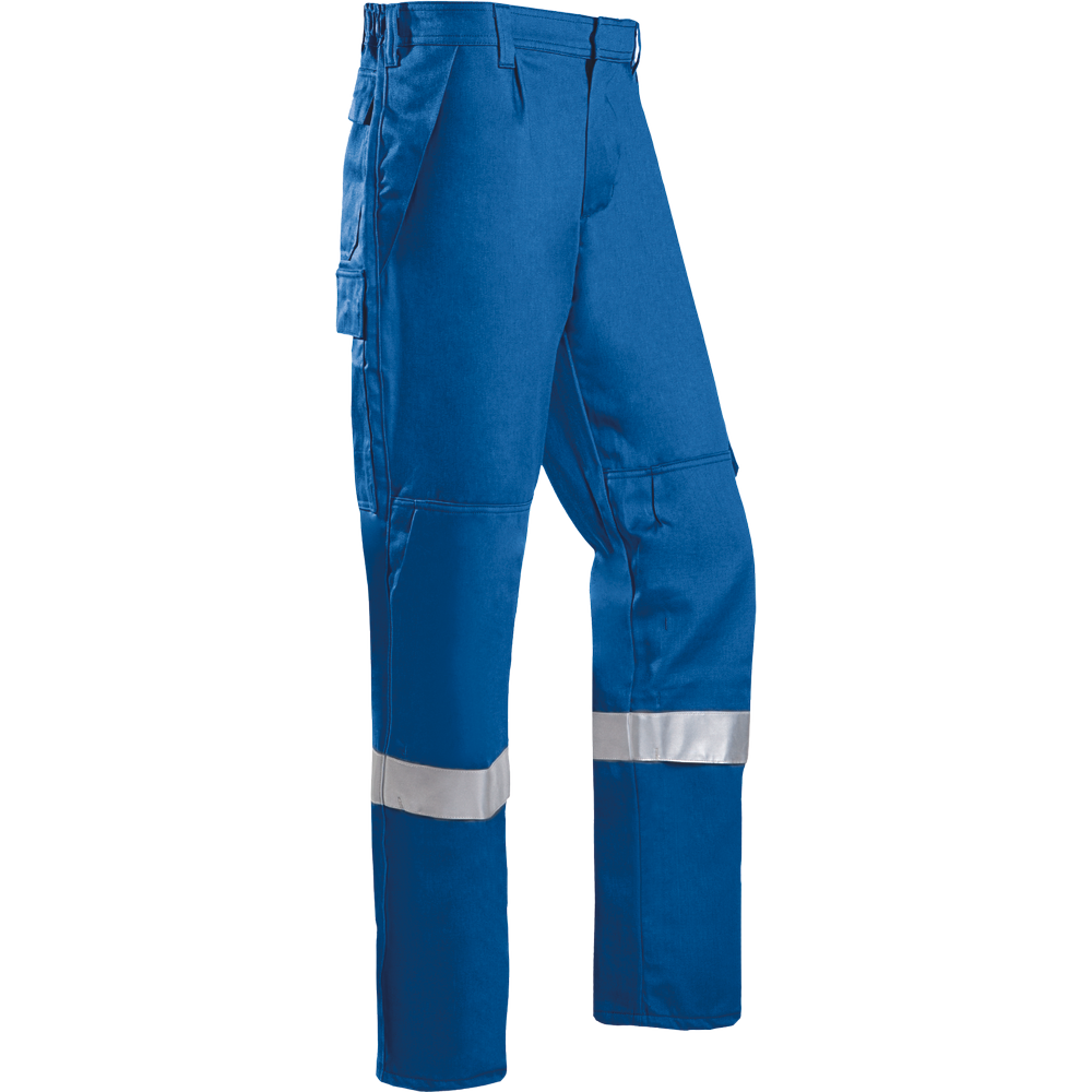 • pánské kalhoty s ochranou proti tepelnému účinku elektrického oblouku • antistatické • poklopec se zapínáním na zip • elastický pas • 2 postranní kapsy se zapínáním na druky kryté klopou • 1 zadní kapsa se zapínáním na druky kryté klopou • 1 zadní pravá stehenní kapsa • kolenní kapsy pro vkládání nákoleníků • dvakrát prošité reflexní pruhy odolné proti plameni okolo spodních nohavic • vhodné pro svařování