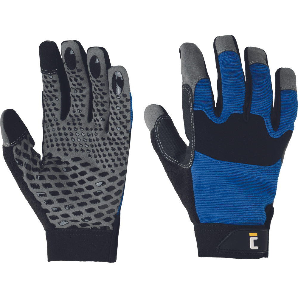 • šité rukavice ze syntetické kůže, spandexu, nylonu, neoprenu a polyesteru • na ukazováku a palci možnost ovládat dotykové obrazovky • protiskluzové PVC zesílení mezi ukazováčkem a palcem • výborný úchop díky silikonovému máčení na dlani a prstech • elastická manžeta na suchý zip
