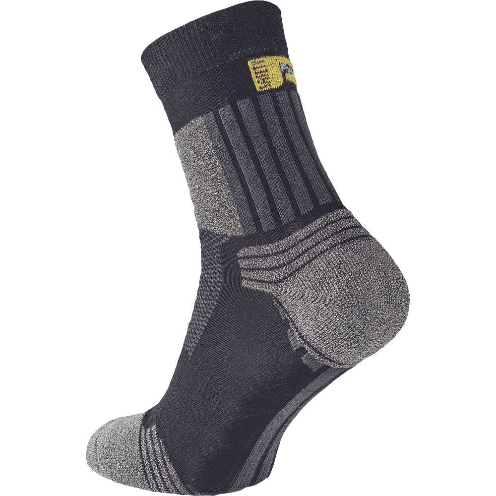 • speciální ponožky vytvořené pro náročné pracovní prostředí i aktivní využití volného času použitím nejnovějších technologií ve výrobě a kombinací speciálně upravovaných vláken • pohodlný neškrtící lem • ochrana nohy při extrémní pracovní zátěži • ideální odvod potu, dokonalá tepelná izolace • velmi jemné šití ve špice • elastická bandáž proti posunu ponožky v botě • polstrované zóny na ochranu nohy proti otlakům a puchýřům • větrací kanálky zaručí ideální klima i při extrémní zátěži