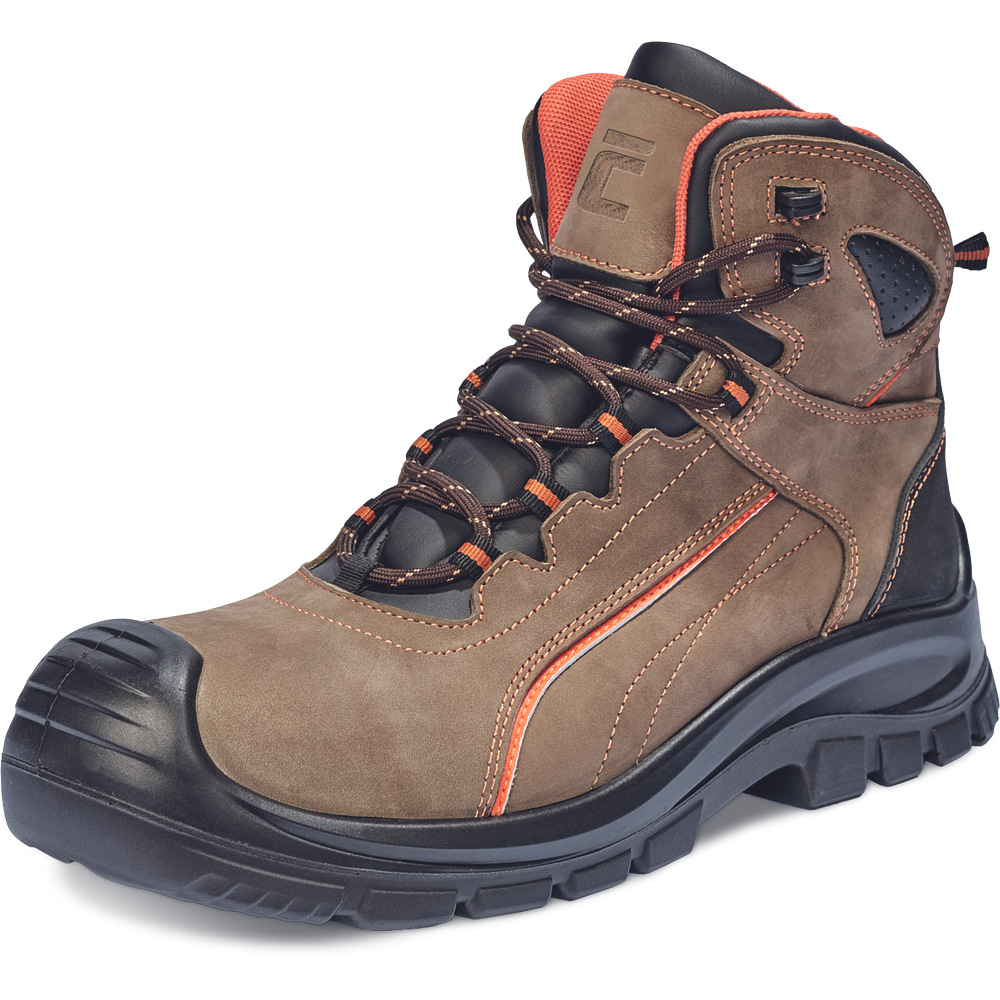 • bezpečnostní kotníková obuv s kompozitní tužinkou a aramidovou stélkou odolnou proti propíchnutí • podešev z dvouhustotního PU s masivní ochranou vůči okopu • svršek z voděodolné nubuk kůže