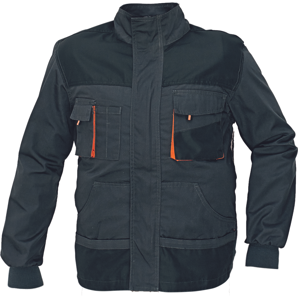 • zimní pracovní bunda moderního střihu se zapínáním na zip krytým légou • větru odolná • vntřní flanelová podšívka • polyester zesílení Oxford 600D v namáhaných místech a na loktech • 2 přední kapsy • 2 náprsní kapsy • odvětrání pod pažemi • elastické žebrové náplety na manžetách a spodním lemu bundy