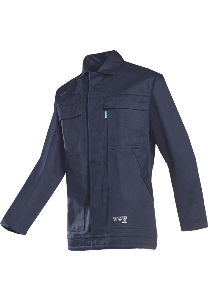 • pohodlná, nehořlavá a antistatická bunda je vyrobena z prodyšné tkaniny, která má vlastnosti regulující vlhkost • je nealergická a neškodná pro vaši pokožku • zesílené švy poskytují zvýšenou odolnost a delší životnost • zapínání na skryté druky pod klopou • 2 našité náprsní kapsy s klopou zapínanou na skryté druky • 2 našité šikmé kapsy s klopou uzavřenou skrytými druky • 1 smyčka pro detektor plynu • zúžení rukávů druky