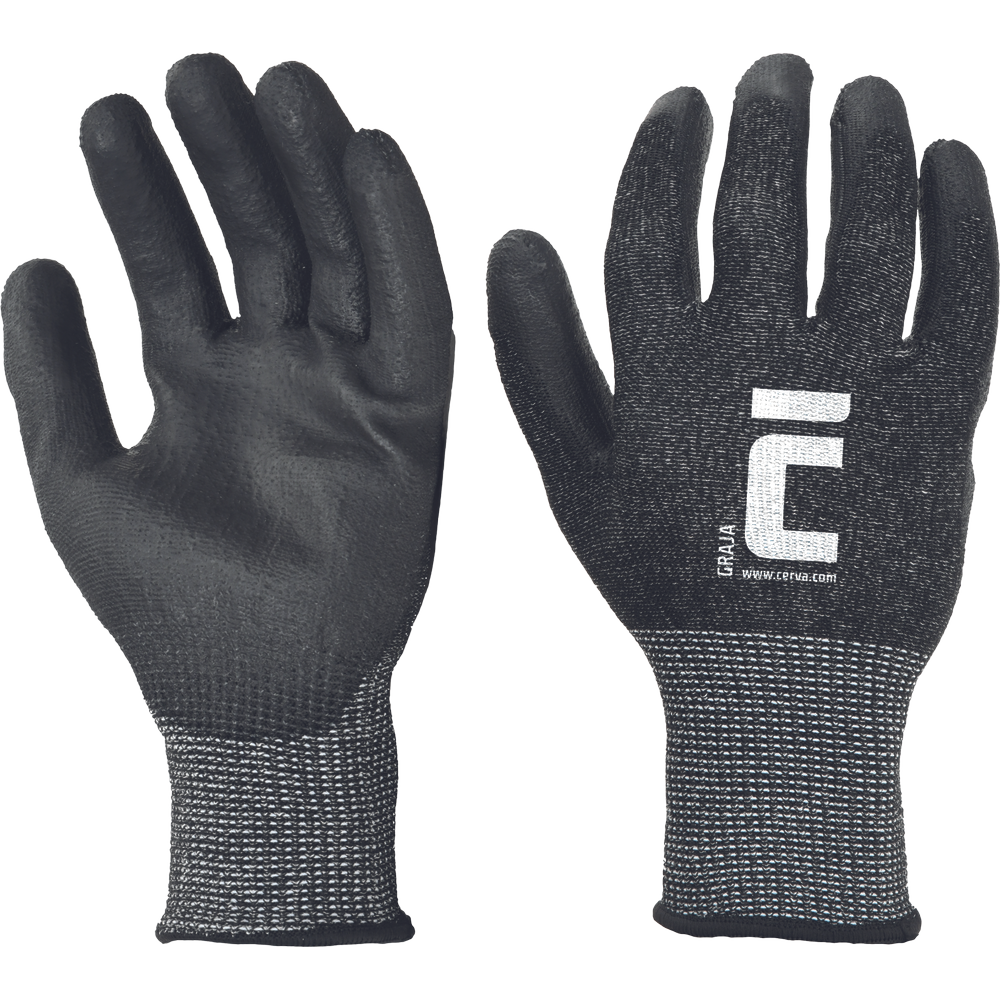 • pletené bezešvé rukavice z polyesteru, spandexu, nylonu a skleněného vlákna máčené v PU • odolnost vůči řezu třída C • hustota úpletu 13 GG