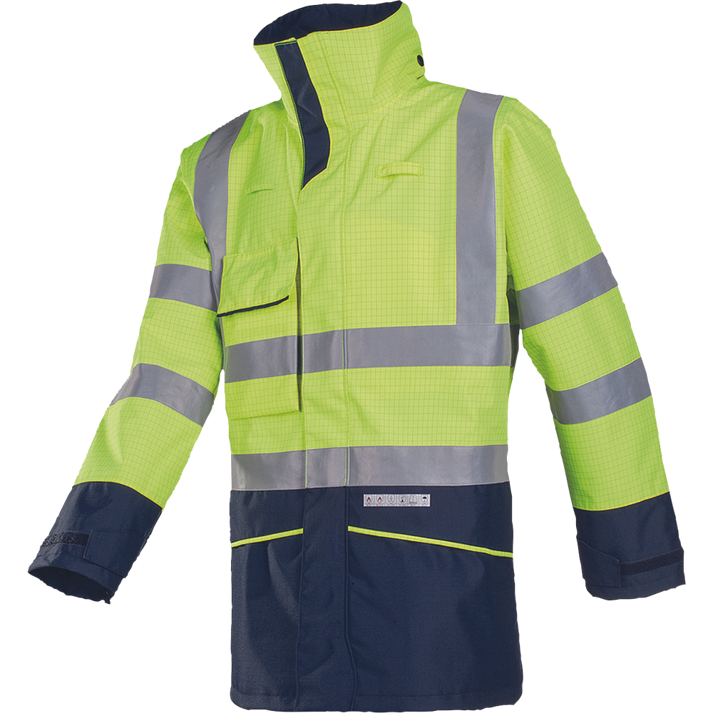 • pánská nehořlavá bunda se stojacím límcem • zapínaní na zip kryté légou na suchý zip • nehořlavá bavlněná podšívka • nastavení obvodu manžet rukávů pomocí suchého zipu