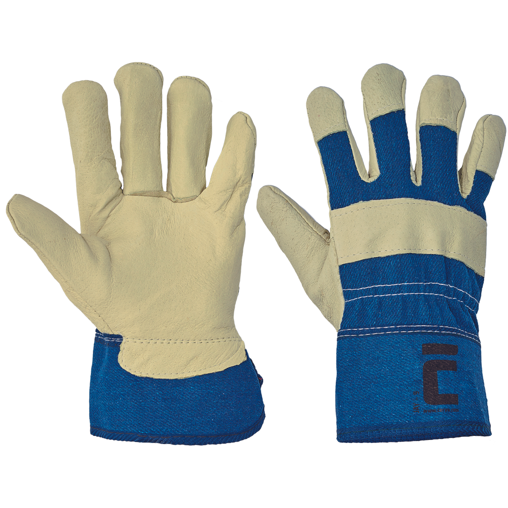 • rukavice z vepřové lícovky v dlani • s podšívkou a z tkaniny na hřbetu a manžetě • dlaň zhotovená z jednoho kusu kůže