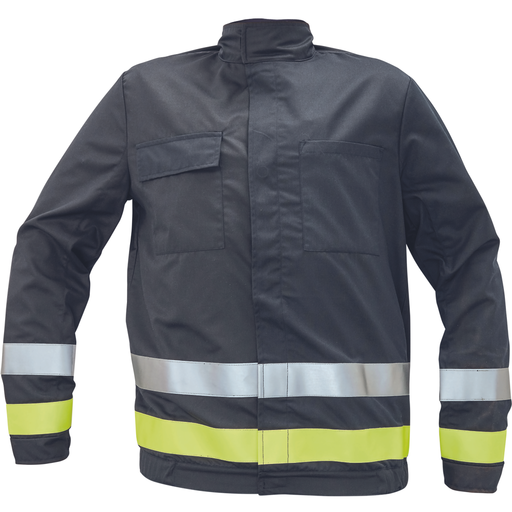 • antistatická ochranná bunda nabízí ochranu před teplem, ohněm a elektrickým obloukem • poskytuje vhodnou ochranu před účinky elektrického oblouku vzniklého, při jednofázovém zkratu (7 000 A) v síti nízkého napětí (max. 400 V, střídavé napětí 50 Hz) • materiál má antistatické (elektrostaticky disipativní) vlastnosti, a z tohoto důvodu ho lze používat ve výbušných prostředích a v blízkosti hořlavých materiálů • hodí se pro pracovníky vystavené teplu a ohni • ochranná bunda zajistí ochranu před účinky přímého ohně po dobu 4 sekund a před účinky tepla o intenzitě 20 kW/m2 po dobu 7 sekund • materiál je sám o sobě odolný vůči teplu a ohni, a praní tak na něj nemá žádný vliv • zapínání bundy na cvoky s klopou na suchý zip • široké záhyby na zádech • 1-1 stříbrný pásek a HI-VIS žlutý reflexní pásek okolo těla a na rukávech • přední část a rukávy jsou vyrobeny z dvojité vrstvy materiálu • manžety na rukávech na suchý zip • elastická manžeta v pase