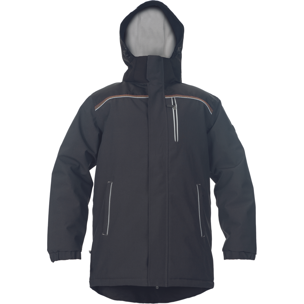 • pánská zateplená zimní bunda s odepínací kapucí • TPU membrána • prodloužený zadní díl • Oxford 600D zesílená část v oblasti ramen • 1 náprsní kapsa, 2 postranní lištové kapsy, 2 uzavíratelné vnitřní kapsy • nastavitelná šíře spodního obvodu • reflexní paspulka lemující sedlo a boční kapsy • dekorativní prošití • možnost strojového vyšívání