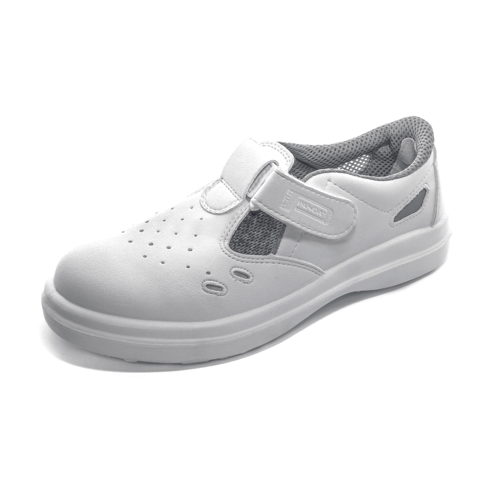Pracovní sandály bez ocelové tužinky, antistatickou a protiskluzovou PU podrážkou, absorpcí energie v patě a svrškem z mikrovlákna s antibakteriální úpravou SANITIZED.