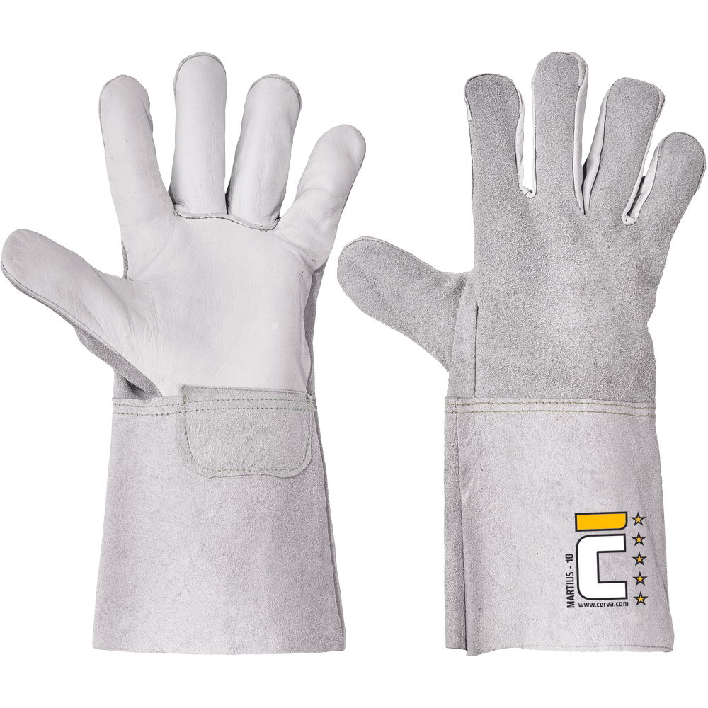 • rukavice z hovězí štípenky • buvolí lícovka na dlani pro zvýšení komfortu a lepší úchop • šité kevlarovou nití • svářecí kategorie B