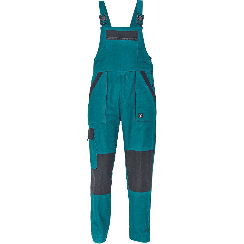 • pánské pracovní kalhoty s laclem a elastickým pasem • široké šle s plastovými sponami • 2 přední kapsy, 1 stehenní kapsa • 1 velká náprsní kapsa, 2 zadní kapsy • zesílená oblast kolen • nastavitelná délka nohavic