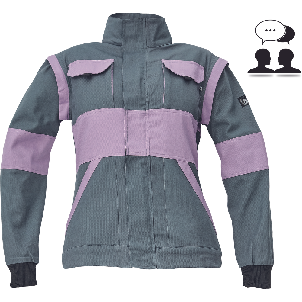 • dámská pracovní bunda se zapínáním na zip krytým légou • odepínatelné rukávy • 2 přední kapsy • 2 náprsní kapsy • zesílení namáhaných míst loktů a ramen • pružné manžety rukávů a spodní obvod v pase