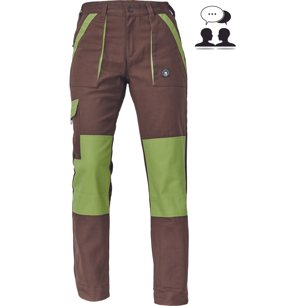 • dámské pracovní kalhoty s elastickým pasem • 2 přední kapsy • 1 stehenní kapsa • 2 zadní kapsa • zesílená oblast kolen • nastavitelná délka nohavic