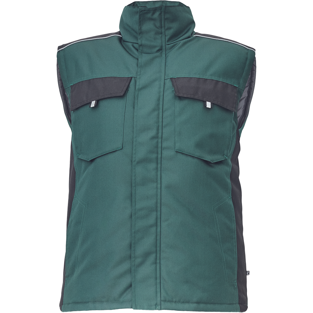 • pánská zimní vesta • zapínání na zip kryté légou na suchý zip • 2 boční kapsy, 2 náprsní kapsy na suchý zip • 1 vnitřní kapsa na mobilní telefon • reflexní prvky