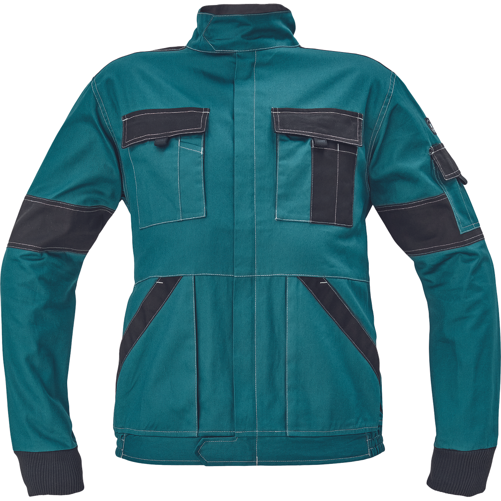 • pánská lehká pracovní bunda se zapínáním na zip krytým légou • 2 přední kapsy • 2 náprsní kapsy s klopou • 1 malá kapsa na levém rukávu • zesílení namáhaných míst loktů a ramen • pružné manžety rukávů a spodní obvod v pase