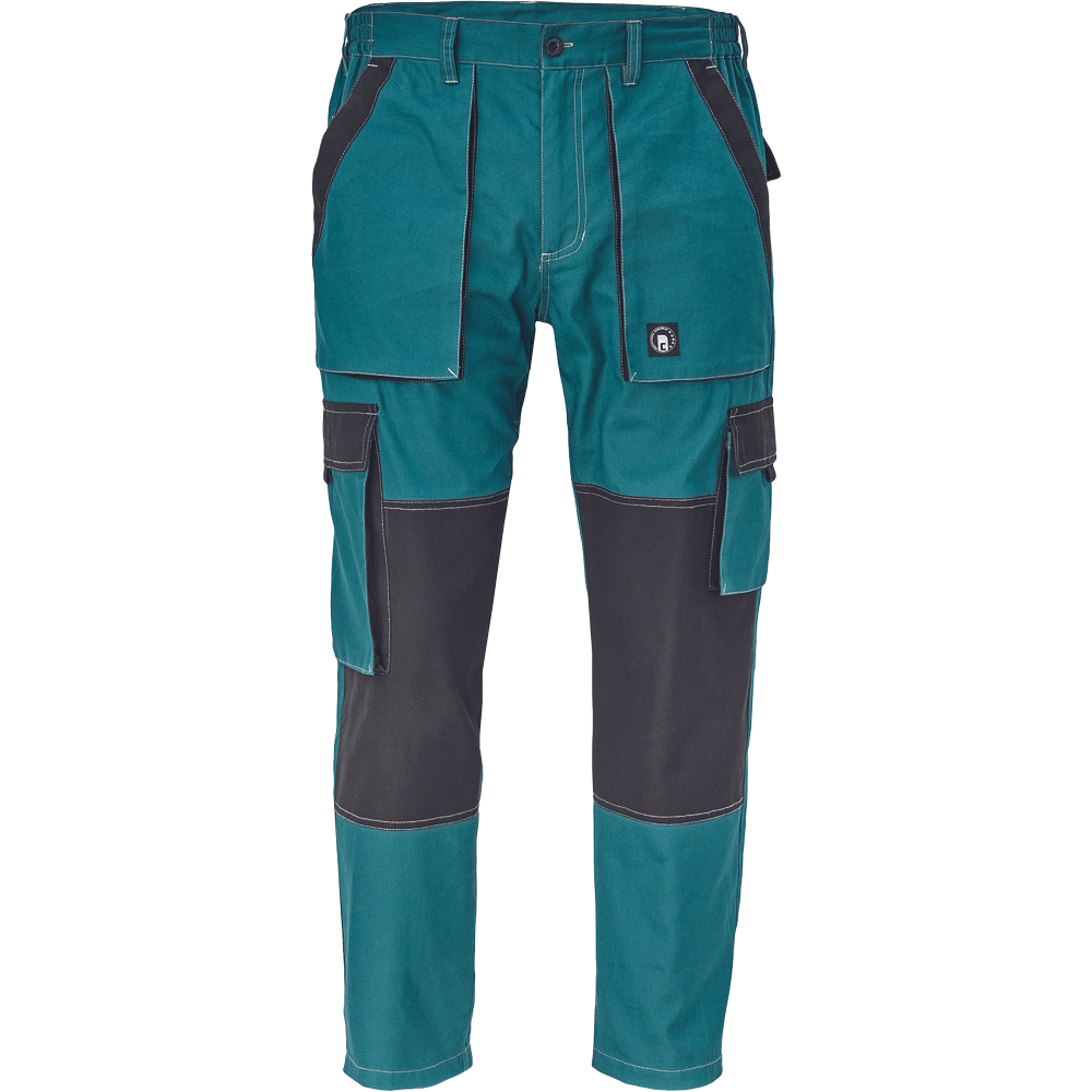 • pánské lehké pracovní kalhoty s elastickým pasem • 2 přední kapsy • 2 stehenní kapsy • 2 zadní kapsy • zesílení nohavic v oblasti kolen • nastavitelná délka nohavic