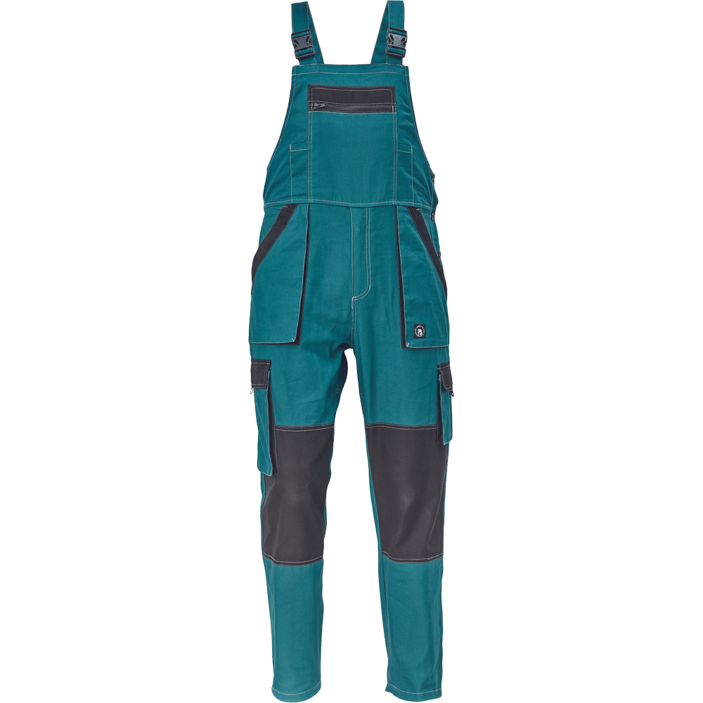 • pánské lehké pracovní kalhoty s laclem a elastickým pasem • široké šle s plastovými sponami • 2 přední kapsy, 2 stehenní kapsy • 1 velká náprsní kapsa na zip, 2 zadní kapsy • zesílení nohavic v oblasti kolen • nastavitelná délka nohavic