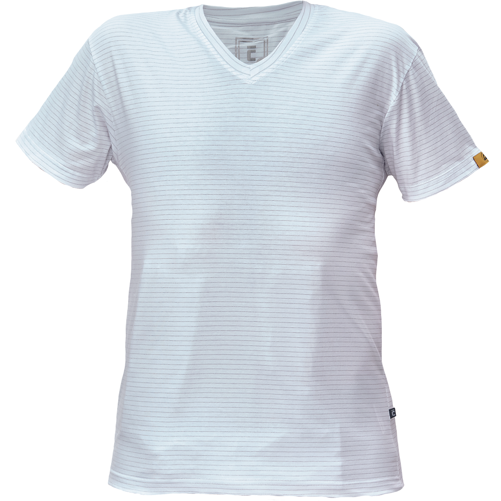 • ESD tričko s krátkým rukávem a V výstřihem, z bavlněného jednoduchého žerzeje pleteného s antistatickým vláknem • zajišťuje ochranu elektronických součástek před elektrostatickými jevy • univerzální střih