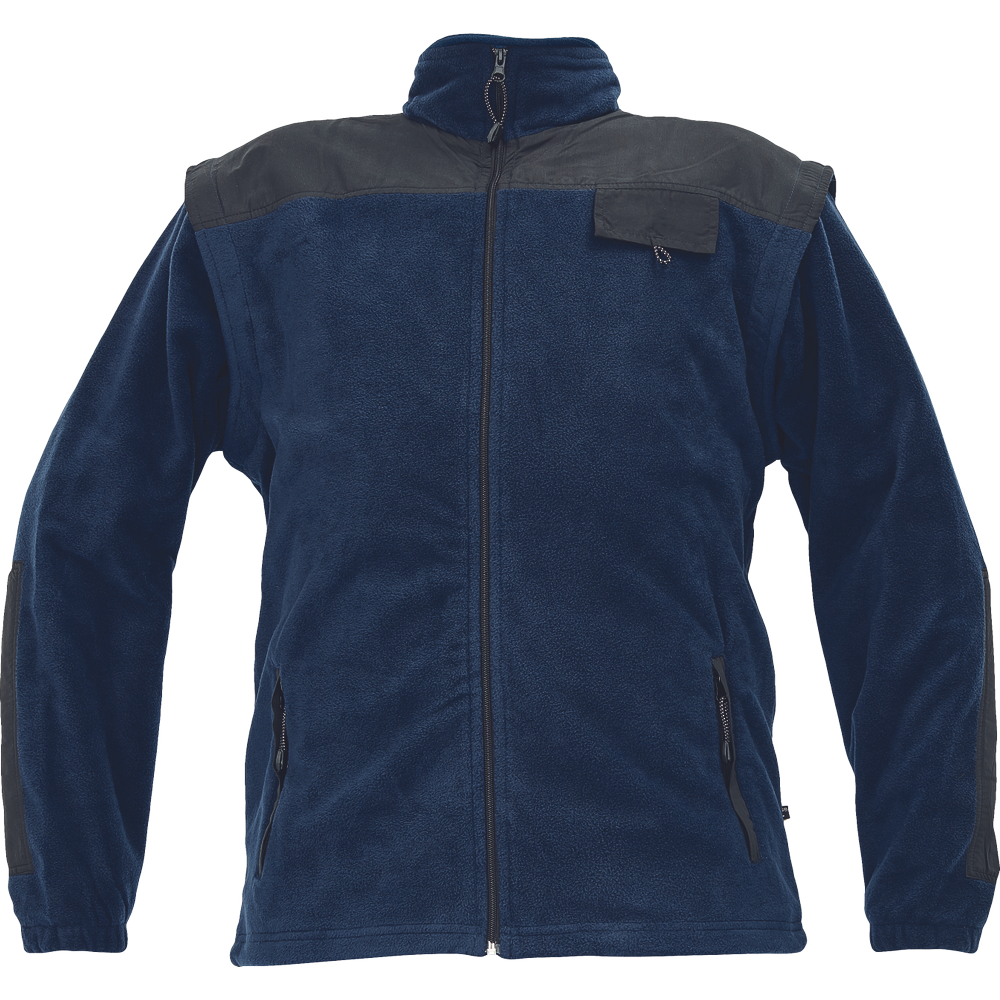 • komfortní celopropínací fleecová bunda 2 v 1 sportovního designu • odepínatelné rukávy • ramena a lokty jsou zesíleny oděruvzdornou, voděodolnou polyamidovou tkaninou pro zvýšení životnosti a odolnosti povětrnostním vlivům • 2 postranní kapsy, 1 náprsní kapsa • elastické manžety rukávů • antipillingová úprava
