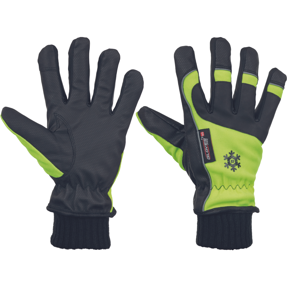 • zimní pětiprsté rukavice z černé polyuretanem potažené (PUR) tkaniny s membránou a textilní fleecovou podšívkou • hřbet je vyroben z polyesterového úpletu • elastická manžeta • vhodné pro ovládání dotykových displejů