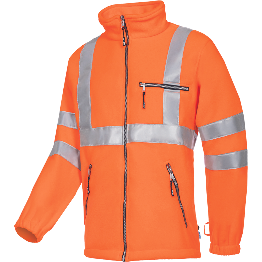 • HI-VIS fleecová bunda se zapínáním na zip • 2 boční kapsy a 1 náprsní kapsa • elastické manžety rukávů • reflexní pruhy