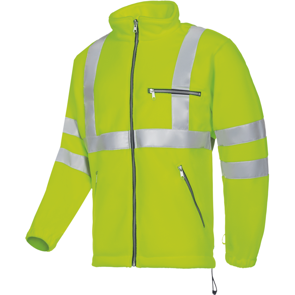 • HI-VIS fleecová bunda se zapínáním na zip • 2 boční kapsy a 1 náprsní kapsa • elastické manžety rukávů • reflexní pruhy