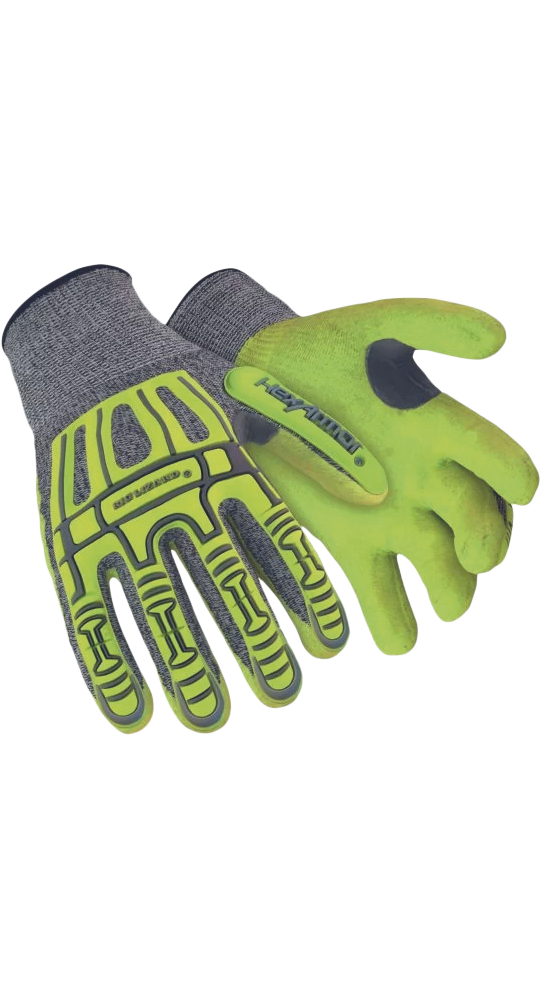 • HexArmor® Rig Lizard® Thin Lizzie™ 2090X: bezešvé ochranné rukavice s nárazovým povlakem • Rig Lizard® 2090X od společnosti HexArmor® se vyznačují silnou odolností proti proříznutí a propíchnutí, stejně jako jejich hi-vis hřbetní částí IR-X® Impact Exoskeleton™ s vysoce flexibilní konstrukcí a zesíleným sedlem palce pro dlouhodobější ochranu • obecné vlastnosti: vynikající citlivost v úrovni ochrany proti proříznutí E • hřbet ruky IR-X® Impact Exoskeleton™ s vysoce flexibilní konstrukcí • pohodlná skořepina z HPPE, oceli a skelných vláken • vysoká odolnost pro dlouhotrvající ochranu • maximální obratnost a hmat • možnost praní • bezpečnostní prvky: Certifikát 4X44EP podle normy EN 388:2016 • hřbet ruky IR-X® Impact Exoskeleton™ chrání ruce před nebezpečím úderu a nárazu • 13-ti vrstvý plášť z HPPE s vysokou viditelností a skelnými vlákny zvyšuje viditelnost a dodržování předpisů pracovníky • pružný pískový nitrilový potah dlaně zajišťuje vynikající přilnavost a odolnost proti oděru ve vlhkém prostředí • zesílená záplata v rozkroku palce pro vyšší odolnost • pletené zápěstí pomáhá zabránit vniknutí nečistot a úlomků do rukavice