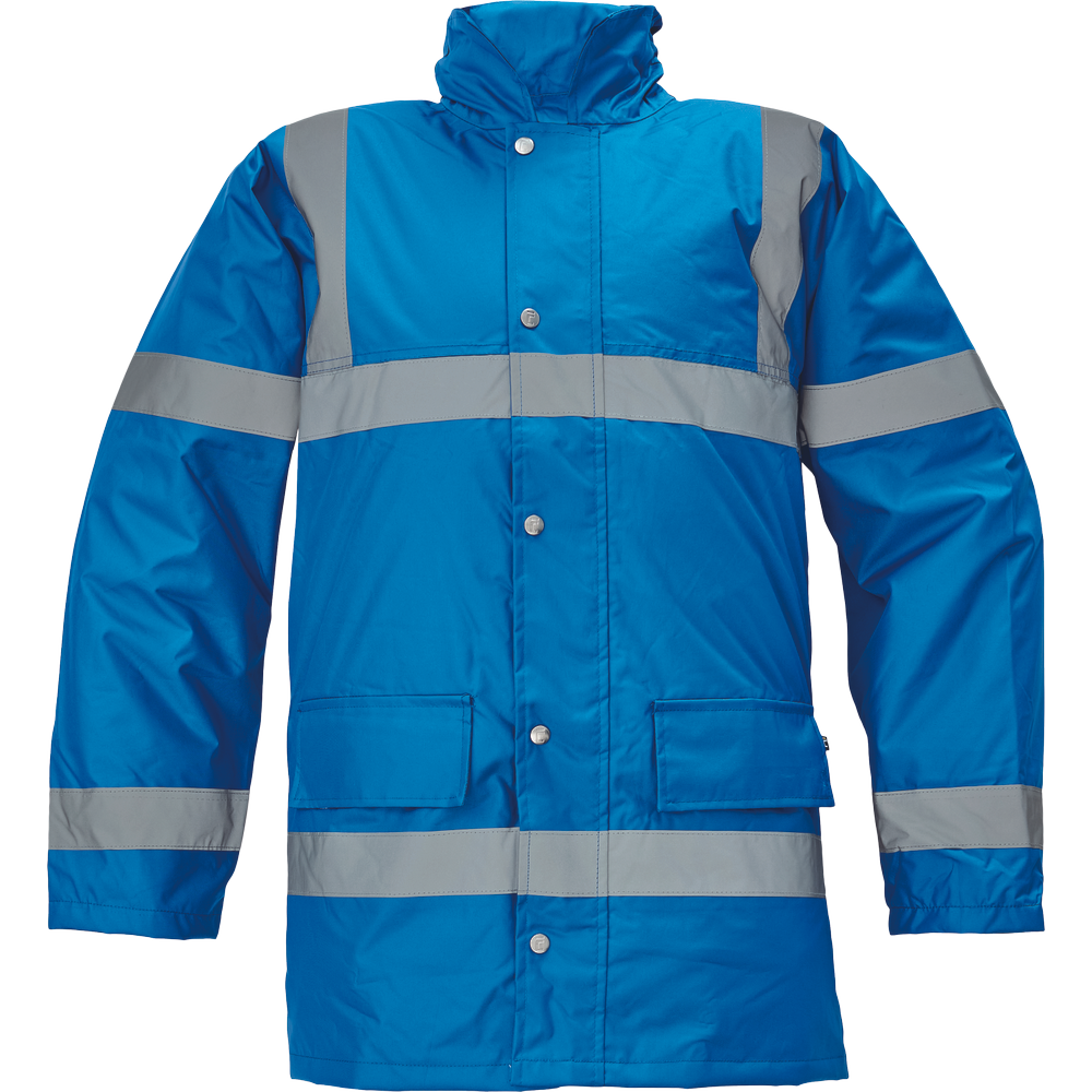 • pánská nepromokavá zimní bunda s integrovanou kapucí, prodyšná • reflexní pruhy přes ramena, okolo hrudi, boků a rukávů • 2 velké přední kapsy • obvod je ke stažení na tkaničku • vnitřní pletené manžety • bunda je certifikována EN ISO 20471: Class 3, toto neplatí pro barvy 50 royal modrou a 41 navy