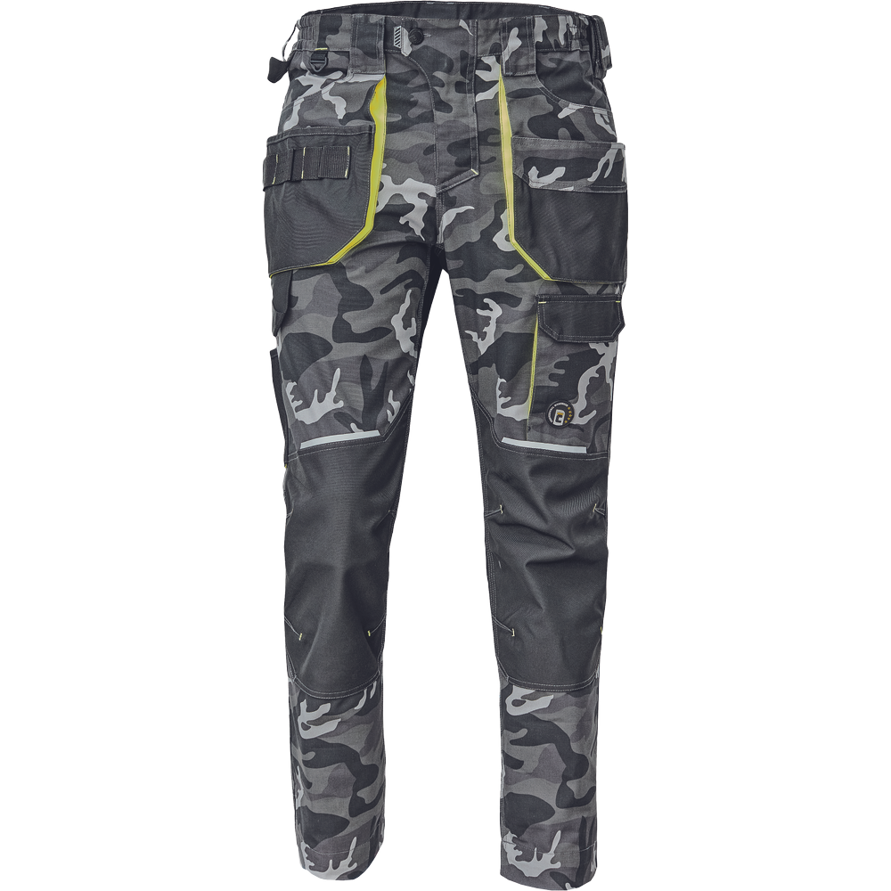 • pánské pracovní kalhoty s pružným pasem a multifunkčními kapsami • v moderní úpravě šedé kamuflážové barvy • Oxford 600D zesílení kolenních kapes pro vkládání ochranných nákoleníků • odolné trojité prošití nohavic a sedu • reflexní prvky • nastavitelná délka nohavic