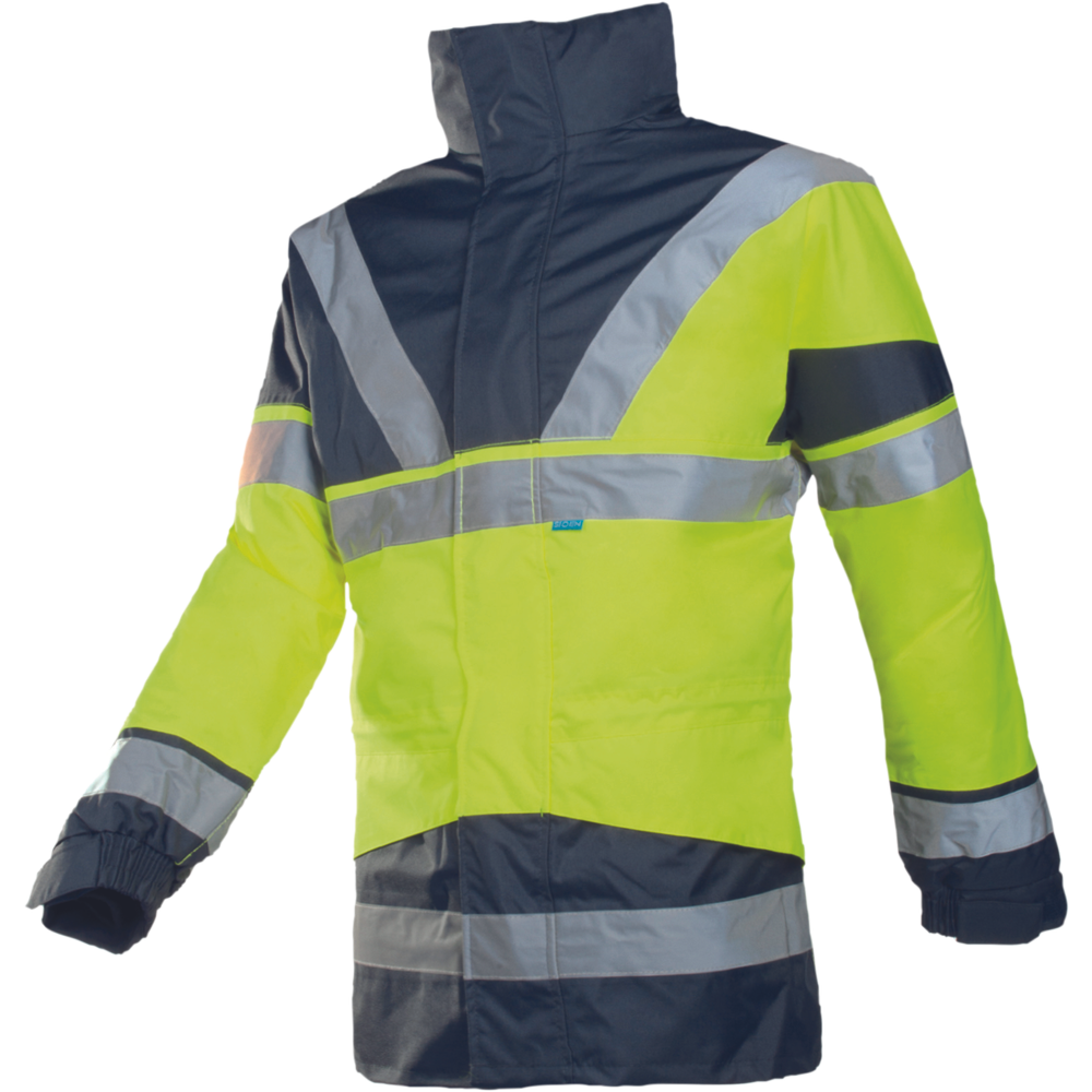 • HI-VIS nepromokavá zimní bunda 4 v 1 s odepínatelnou zateplenou vložkou • vnitřní HI-VIS vložka má odepínatelné rukávy a lze ji použít samostatně i jako vestu • kapuce je skrytá v límci • vysoce prodyšná • reflexní pruhy přes ramena a okolo hrudi, boků a rukávů • 2 vnitřní kapsy na zip • vnitřní stahování v pase • pletené manžety v rukávech • nastavitelná šířka rukávů pomocí suchého zipu