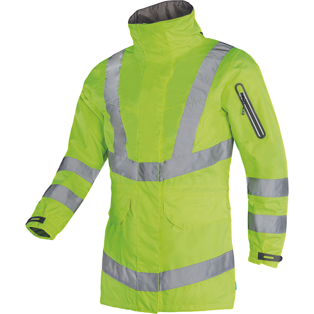 • dámská HI-VIS nepromokavá bunda s odepínací kapucí • zapínání na zip pod dvojitou chlopní • vysoká voděodolnost a paropropustnost • 2 vsazené kapsy s chlopní a zapínáním na druky, 1 kapsa na rukávu • odvětrání v podpaží • stahovací šňůrka v pase • 5 cm reflexní pruhy • nastavitelná šířka rukávů pomocí suchého zipu • v 96 oranžové barvě certifikována dle RIS 3279 TOM pro použití na železnicích • kompatibilní se softshellovou bundou JERICA
