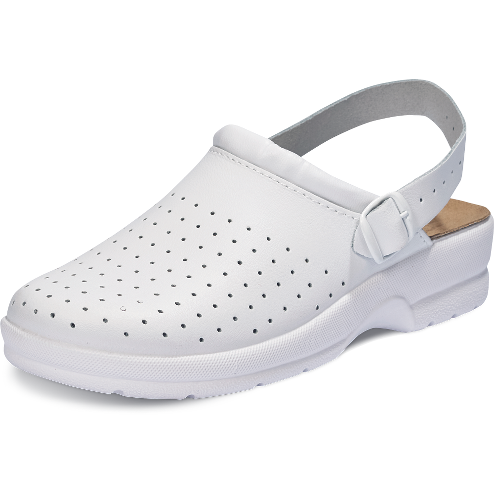 Dámské a pánské pantofle s nastavitelným páskem na patě. Pohodlná PU podešev je vybavená stélkou ze semišové kůže. Perforovaný svršek je vyroben z povrstvené kůže.
