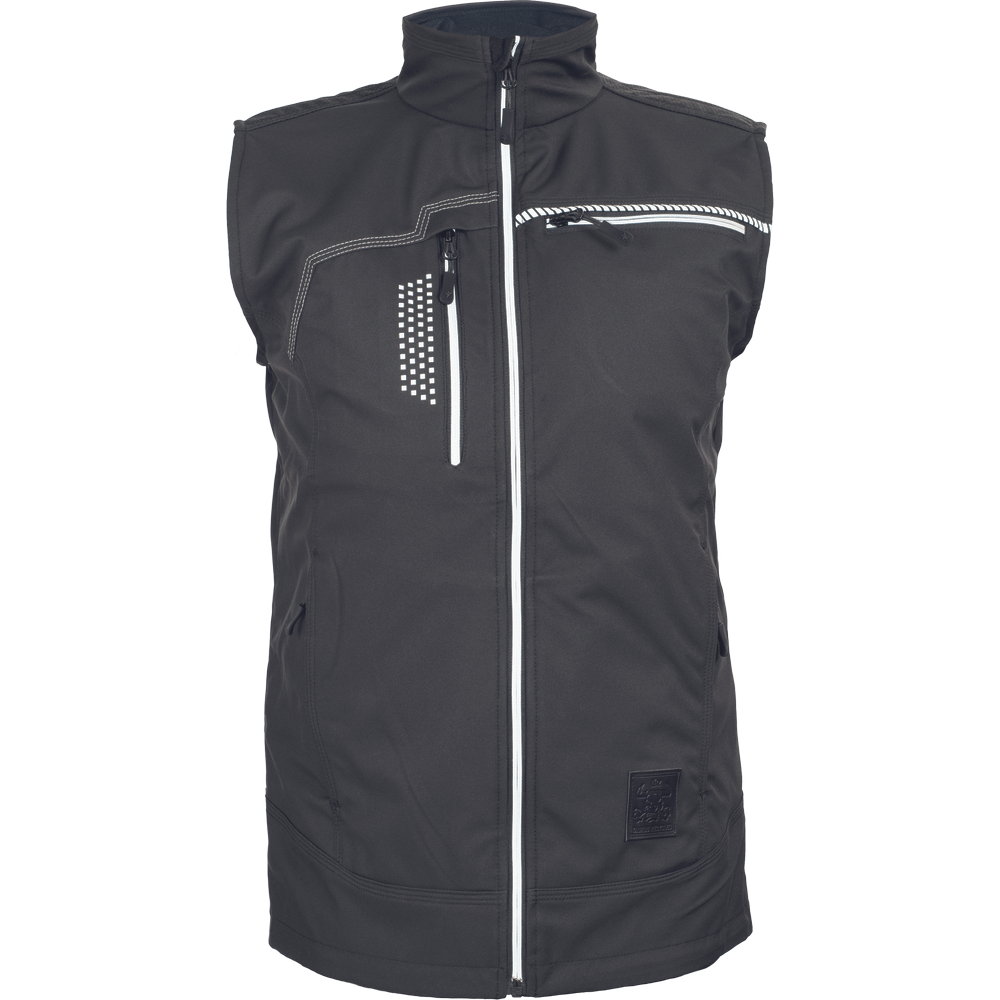 • moderní pánská softshellová vesta • zapínání na reflexní zip • vpravo Napoleon kapsa na zip • vlevo náprsní kapsa • 2 boční kapsy • Cordura zesílení v oblasti ramen • reflexní paspulky pro lepší viditelnost