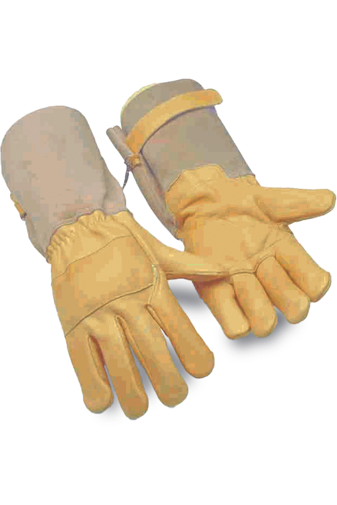 • rukavice s dlaní a hřbetem z nejkvalitnější lícové usně • vodoodpudivá a ohnivzdorná úprava • výztuž z lícové kůže s vodoodpudivou úpravou na zádech • 16 cm dlouhá bezpečnostní manžeta ze štípenky s vodoodpudivou úpravou • šité kevlarovou® nití • 15 cm Kevlar® manžeta • Kevlar® podšívka na dlani • nastavení lepícího pásku na bezpečnostní manžetě