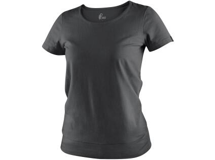 Dámské tričko volnějšího střihu s pružným lemem v pase, kulatým průkrčníkem a bočními švy. Finální silikonová úprava materiálu, která zajišťuje vyšší měkkost a odolnost vůči zašpinění. Použití v práci i pro volný čas. Vhodné pro potisk a výšivku.