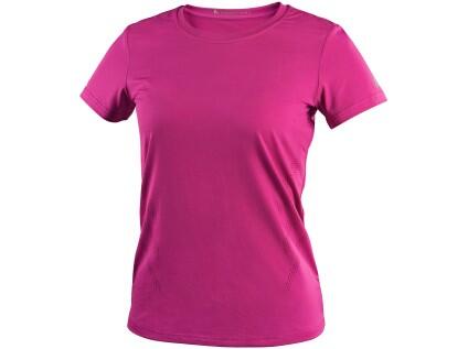 Dámské funkční tričko s krátkým rukávem, kulatým průkrčníkem a bočními švy. Tričko je vyrobeno z materiálu Coolmax®, který zajišťuje vysoce účinný odvod vlhkosti a rychlé schnutí, je lehký a měkký na dotek, což přispívá k celkovému pohodlí. Perforova