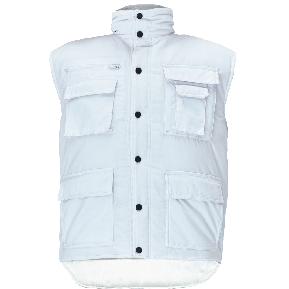 • zateplená pánská zimní vesta se stojáčkem • prodloužený díl na zádech • zapínání na plastové druky • 2 velké přední multifunkční kapsy • 2 náprsní mutlifunkční kaspy