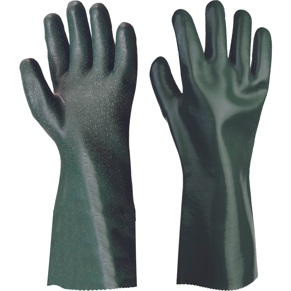 • šitý bavlněný úplet máčený v PVC s nitrilem • ochrana proti mechanickému a chemickému riziku • délka 32cm • s posypem v dlani