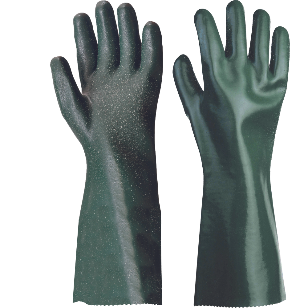 • šitý bavlněný úplet máčený v PVC s nitrilem • ochrana proti mechanickému a chemickému riziku • délka 40cm • (AS) s posypem v dlani
