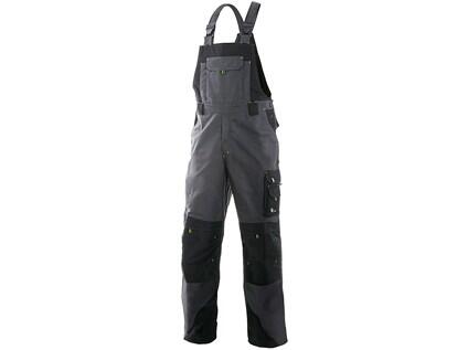 Pánské montérkové kalhoty s náprsenkou, zateplené flanelem, náprsní kapsa s klopou, pas s poutky na opasek, v zadní části guma s knoflíkem pro přizpůsobení velikosti, přední klínové kapsy, multifunkční kapsy na obou stranách, kolena zesílena materiálem 600D polyester s možností vložení kolenních výztuh, dvě zadní kapsy s klopami, spodní část nohavic vyztužena materiálem 600D polyester, šle s gumou vzadu, reflexní doplňky. Doporučené použití: stavebnictví, strojírenství, lehký průmysl, automobilový průmysl, logistika, skladová manipulace, spedice, autoservisy, údržba, montáže, zemědělství, zahrada, hobby.